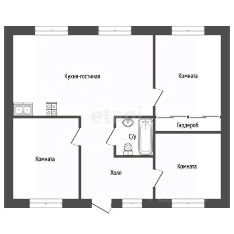 -прихожая, кухня, столовая, гостиная, санузел.